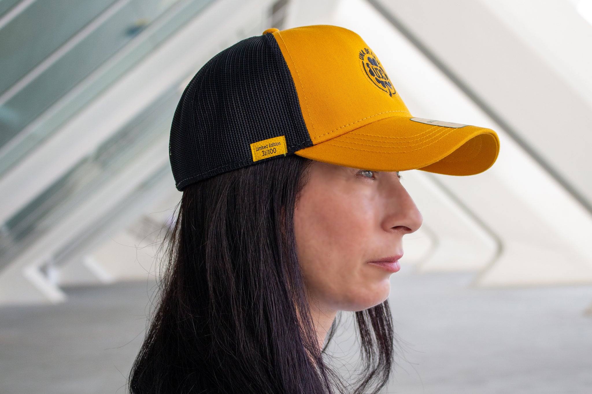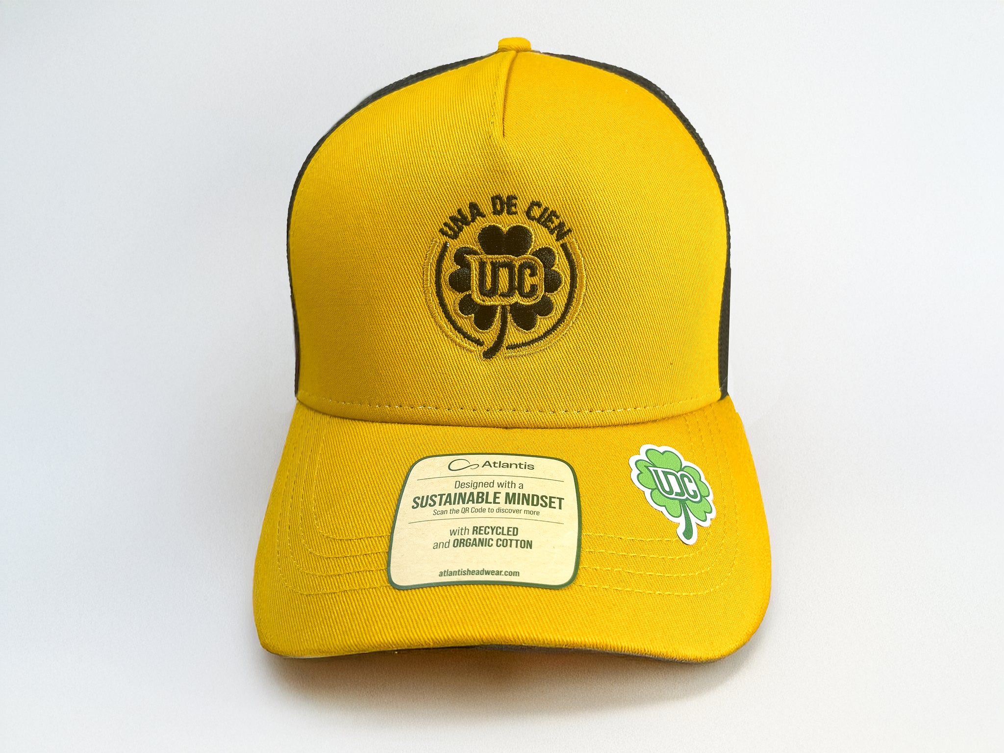 Descubre la exclusividad con nuestra Gorra Alicante, diseñada con poliéster reciclado en un vibrante color mostaza y negro. Presenta un bordado en el panel frontal, además de visera curvada y rejilla trasera, con un cierre de plástico ajustable para un confort perfecto.