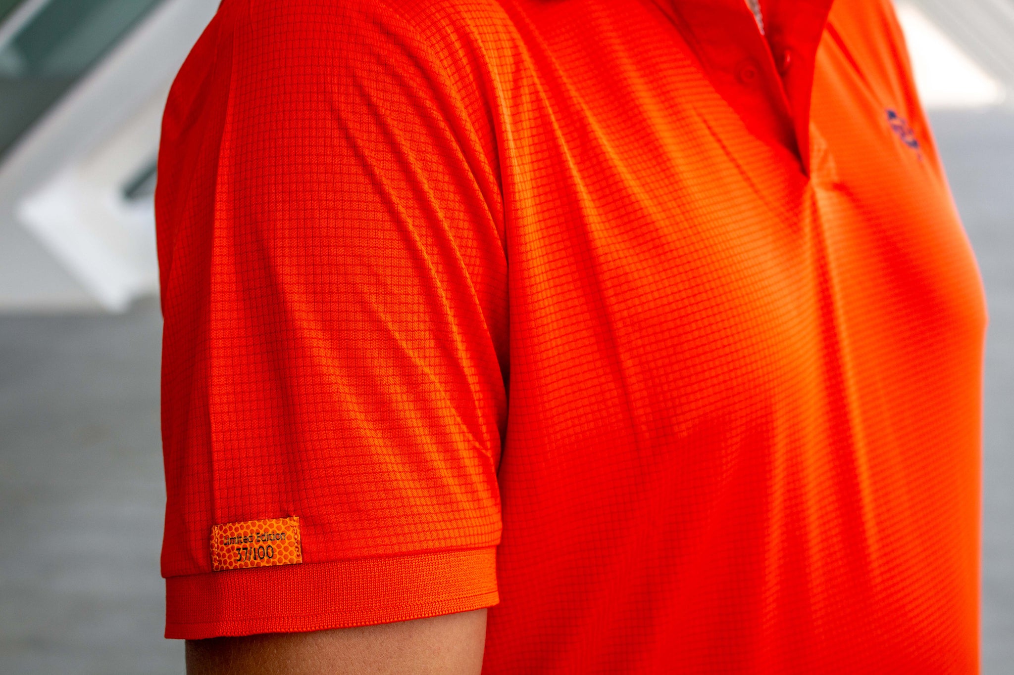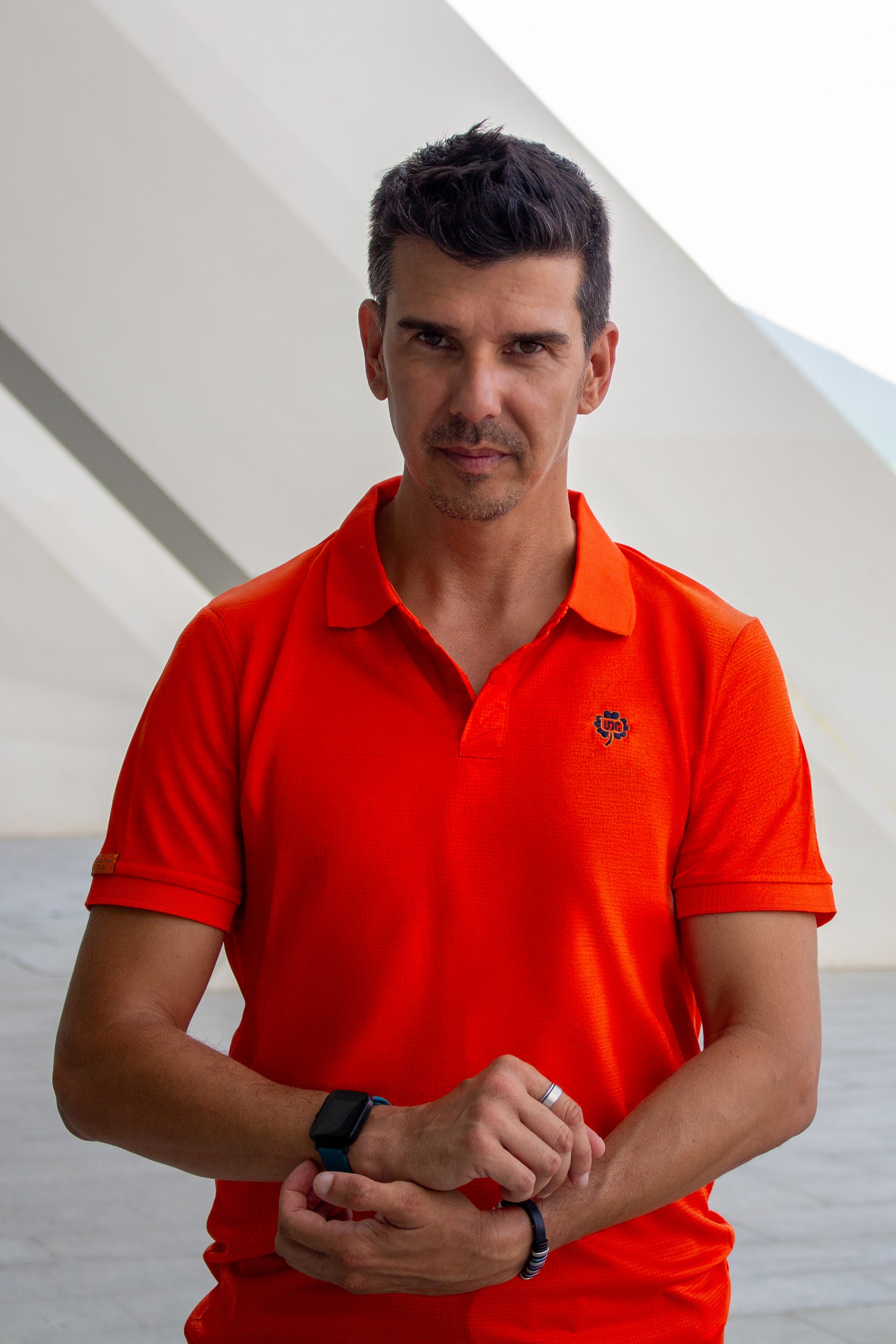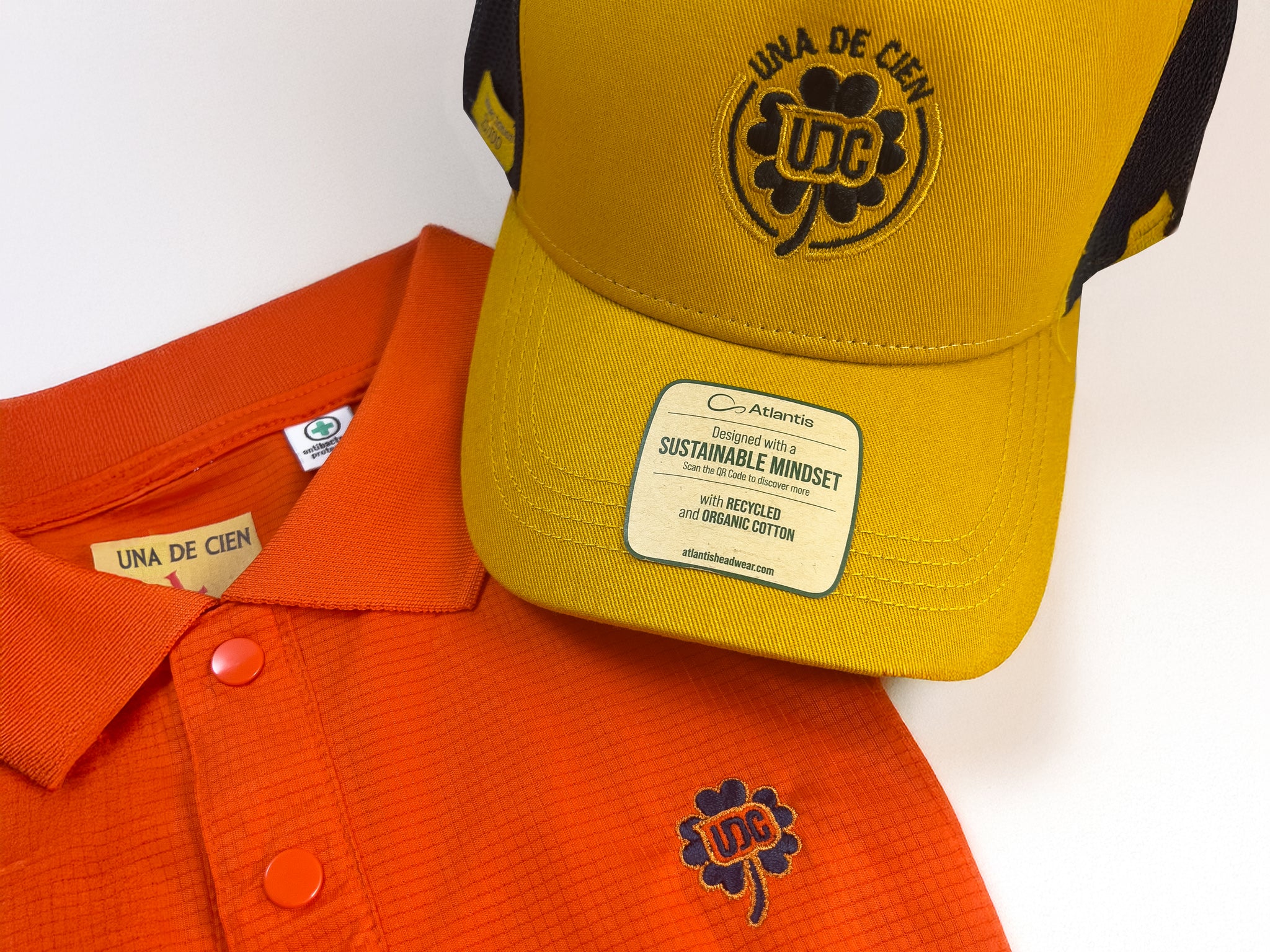 Con un diseño fresco y vibrante, el polo técnico naranja presenta un bordado del trébol Una de Cien. Ideal para quienes buscan estilo técnico y exclusivo.